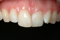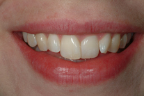 Trångställda, ojämna tänder. Behandling: Generell blekning samt 6 fasader.