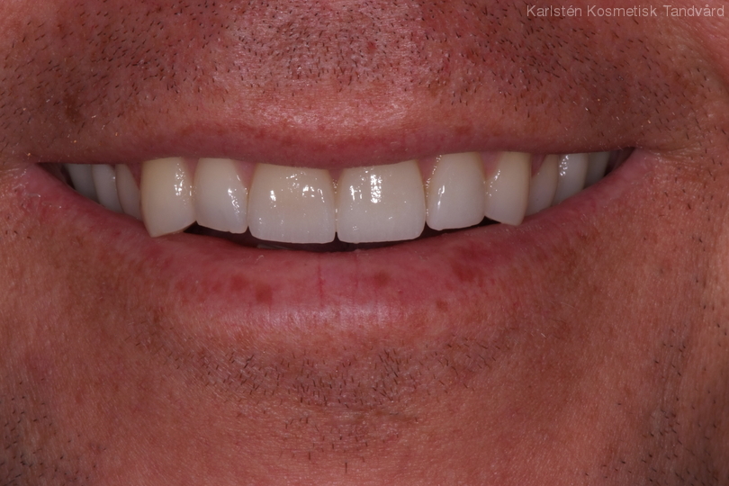 3 framtänder skadade för ett antal år sedan. Då lagade med compositefyllningar. Behandling: Generell blekning, 1 krona och 2 fasader.