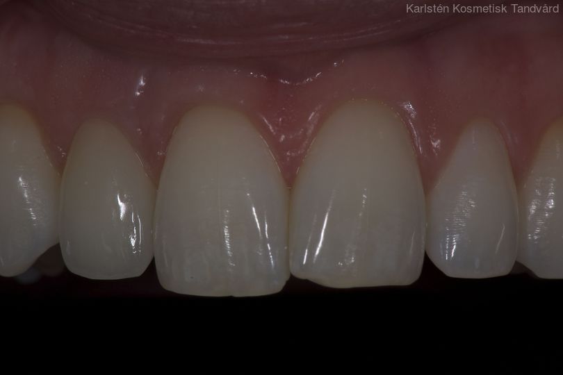 30-årig kvinna med frakturerad framtand med infektion som måste tas bort. Behandlingen bestod av generell blekning, implantat med ben- och bindvävsuppbyggnad samt en implantatkrona