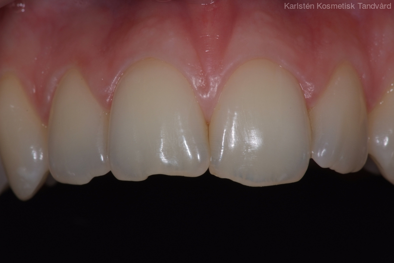 24-årig kvinna som skadat 2 framtänder. Tänderna uppbyggda i composite.