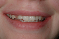 19-årig flicka som har felställning på en hörntand. Behandling med laserkonturering och 1 fasad.
