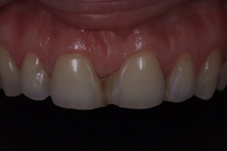 Kvinna som är missnöjd med sina framtänder. Behandling: Generell blekning samt 4 fasader.