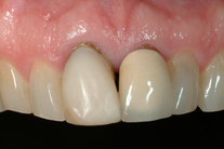 2 framtänder som måste tas bort ersätts av 2 implantat. Behandling: Framtänderna ersätts med TandNu, dvs direkt användbara tänder som sätts in samtidigt som dom dåliga tänderna tas bort.