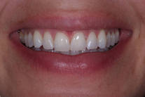 Avslagen bit av framtand. Lagad med skiktad composit.