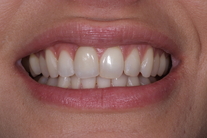 Höger framtand måste tas bort och ersattes med ett implantat och en krona.