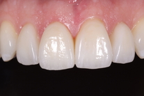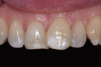 Önskemål om jämnare tandrad. Behandling: Generell blekning, laserkonturering av tandköttet samt 4 fasader.