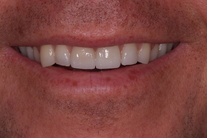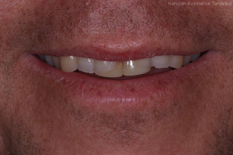 3 framtänder skadade för ett antal år sedan. Då lagade med compositefyllningar. Behandling: Generell blekning, 1 krona och 2 fasader.