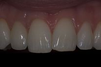 30-årig kvinna med frakturerad framtand med infektion som måste tas bort. Behandlingen bestod av generell blekning, implantat med ben- och bindvävsuppbyggnad samt en implantatkrona