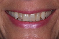Missnöjd med överkäkständerna. Behandling: Generell blekning samt 4 fasader.