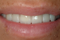 Ojämna framtänder med avvikande position och form. Behandling: 10 fasader i överkäken.