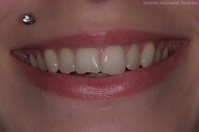 24-årig kvinna som skadat 2 framtänder. Tänderna uppbyggda i composite.